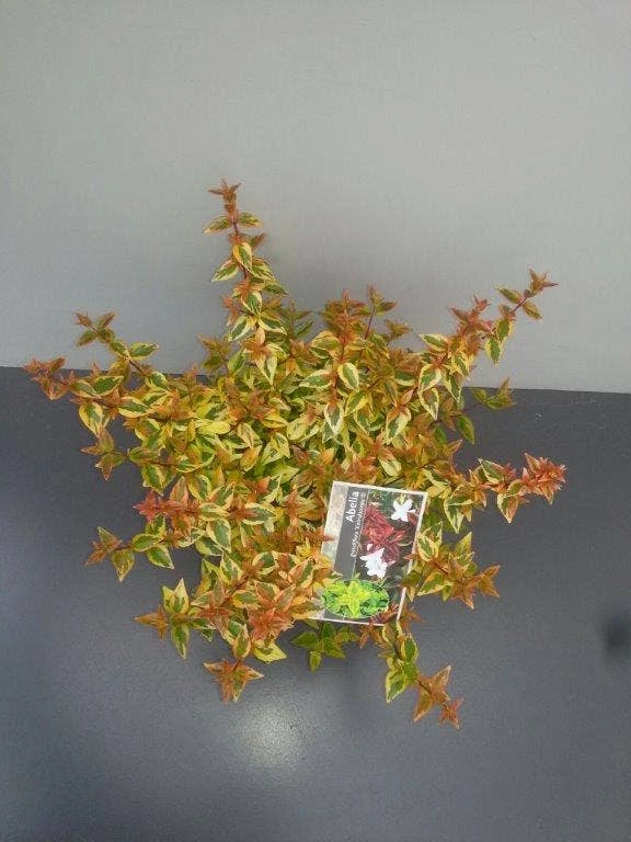 Abelia grandiflora ‘Kaleidoscope’ is een geel-bontbladige Abelia. In milde winters is Abelia grandiflora ‘Kaleidoscope’ wintergroen, in strenge winters laat de Abelia blad vallen. Abelia grandiflora ‘Kaleidoscope’ staat graag op een beschutte plek. in het najaar en winter heeft de Abelia ‘Kaleidoscope’ prachtige bladverkleuring. Abelia ‘Kaleidoscope’ groeit van nature bolvormig en hoeven niet gesnoeid te worden. Als de Abelia uit model groeit kan u deze wel door snoeien weer in model snoeien.