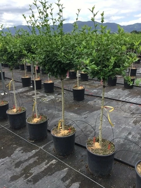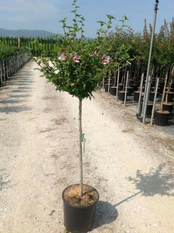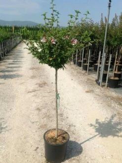 Hibiscus syriacus ‘Hamabo’ als halfstam krijgt zachtroze bloemen met een stralend rood hart. Hibiscus syriacus ‘Hamabo’ bloeit rijk van augustus tot september. Bent u op zoek naar een sierheester die lang bloeit, dan kunt u een Hibiscus overwegen.