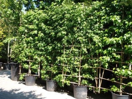 Liquidambar styraciflua ‘Worplesdon’ gekweekt tot leivorm.