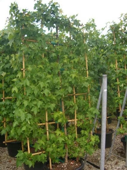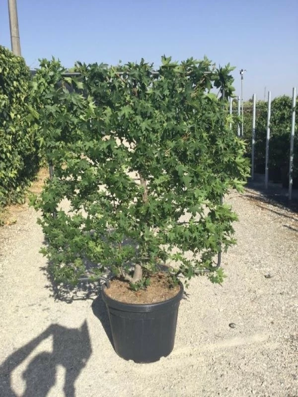 Liquidambar styraciflua (Amberboom als leivorm) krijgt mooi herfstkleuren.