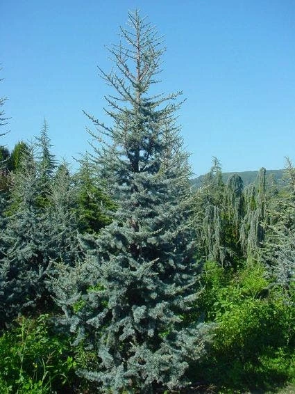 Atlasceder (Cedrus libani ‘Glauca’), dit is de blauwe Cedersoort. Deze cedersoort wordt bij ons meestal als decoratieve blauwe vorm (Glauca), in parken en tuinen aangeplant. Hij heeft een losse vorm die eerst breed kegelvormig, later onregelmatig breed wordt. De top staat altijd rechtop. De naalden zijn alleenstaand op de lange loten, en staan in bosjes op de korte loten. Ze zijn stijf, spits en blauwgroen tot zilvergrijs. De mannelijke bloemen zijn eenhuizig en rechtopstaand op de kortere loten, soms geelachtig of een beetje roze. De vrouwelijke bloemen zijn lange lichtgroene of roze kegeltjes. De tonvormige, lichtbruine kegels staan rechtop en zijn pas in het 3e jaar rijp. Fors uitgroeiende conifeer met een breed piramidale kroon. Hoogte 10 – 12 m en een vrij open vertakking. Korte blauwgrijze naalden in bundels. In herfst opstaande kegels. Eerst groen, later bruin. Zonnige standplaats.