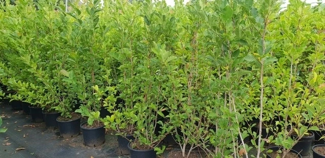 Na de bloei kunnen rozerode vruchten ontstaan, maar dit komt in ons land niet heel vaak voor.