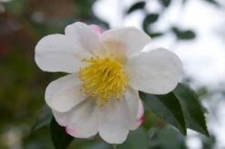 Camellia sasanqua ‘Hino de Gumo’ bloeit met witte bloemen met een roze zweem of roze vlekken aan de rand, van oktober tot december. In zachte winters kan de bloei nog lang aanhouden. De bloemen van sasanqua camelia’s zijn wat kleiner, maar ze bloeien wel heel rijk. Ook bloeien ze vaak langer door.