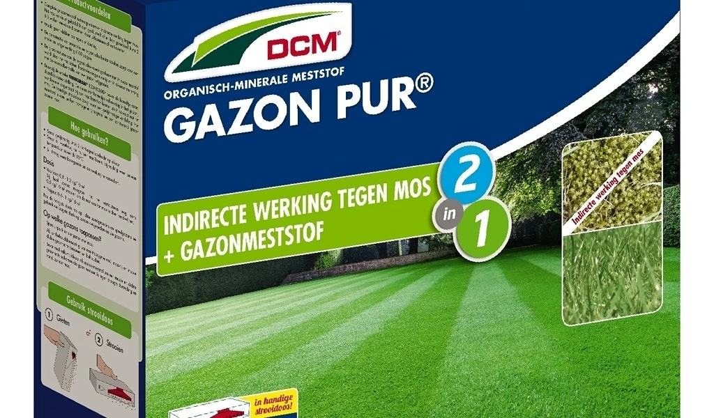 DCM Meststof Gazon Pur® is een 2-in-1 product: meststof met indirecte werking tegen mos via de wortels: het mos vergeelt en sterft af na 3 weken. Rijk aan kalium om de grasmat te versterken tegen droogte, vorst en betreding. Ideaal voor gazons met matige mosdruk.