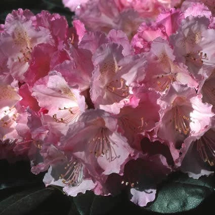 Rhododendron ‘Polaris’ is een laagblijvende Dwergrhododendron die vanaf mei bloeit met donkerroze bloemen.