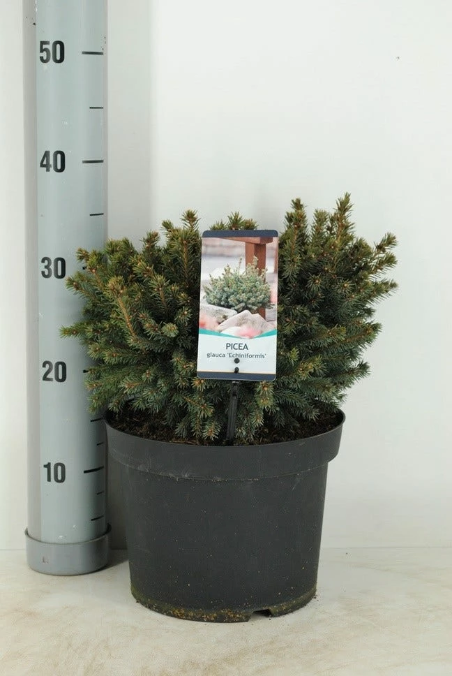 Zeer compact groeiende dwergconifeer. Wintergroen. Bolvormige, iets afgeplatte groeiwijze. Hoogte tot 50 cm, breedte ruim 70 cm. Korte blauwgroene naalden, dicht opeen. Zeer winterhard. Zon – halfschaduw.