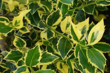 Ilex aquifolium ´Argentea Marginata´ is een hulst met egaal witte randen op de bladeren. Deze Hulst draagt tevens een overvloed aan bessen.