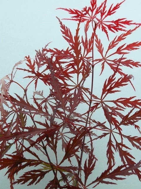 Het rode blad is fijn en diep ingesneden. In de Herfst krijgt het blad een purperrode kleur.