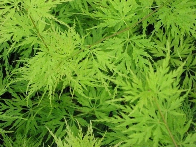 Acer palmatum ‘Seiryu’ heeft frisgroen blad in de zomer, dat zeer diep is ingesneden.