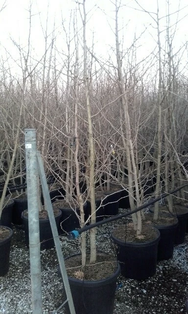 Deze Japanse Notenboom is gekweekt als meerstammige boom.