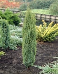 Juniperus communis ‘Arnold’ is een conifeer die traag zuilvormig uitgroeit.