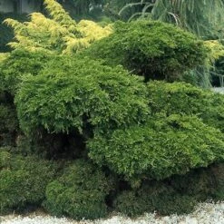 Conifeer met een breed spreidende groeiwijze. Hoogte circa 1 m, breedte circa 2 m. Takken iets doorbuigend. Langzame groei. Loof heldergroen. Lichte standplaats. Verdraagt snoei. Decoratieve solitair. Zeer winterhard.