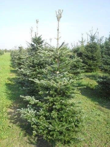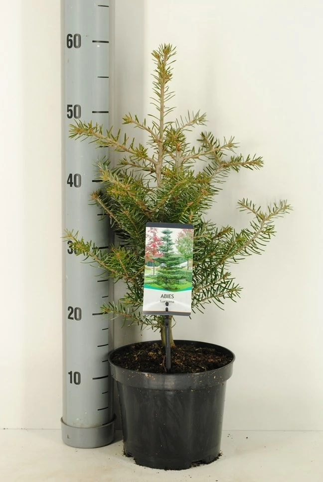Smal piramidaal groeiende conifeer. Hoogte 5 – 6 m. Takken bijna haaks op de hoofdstam. Naalden groen, aan onderzijde opvallend blauwgrijs. In najaar decoratieve opstaande purperen kegels. Verdraagt droge standplaats.
