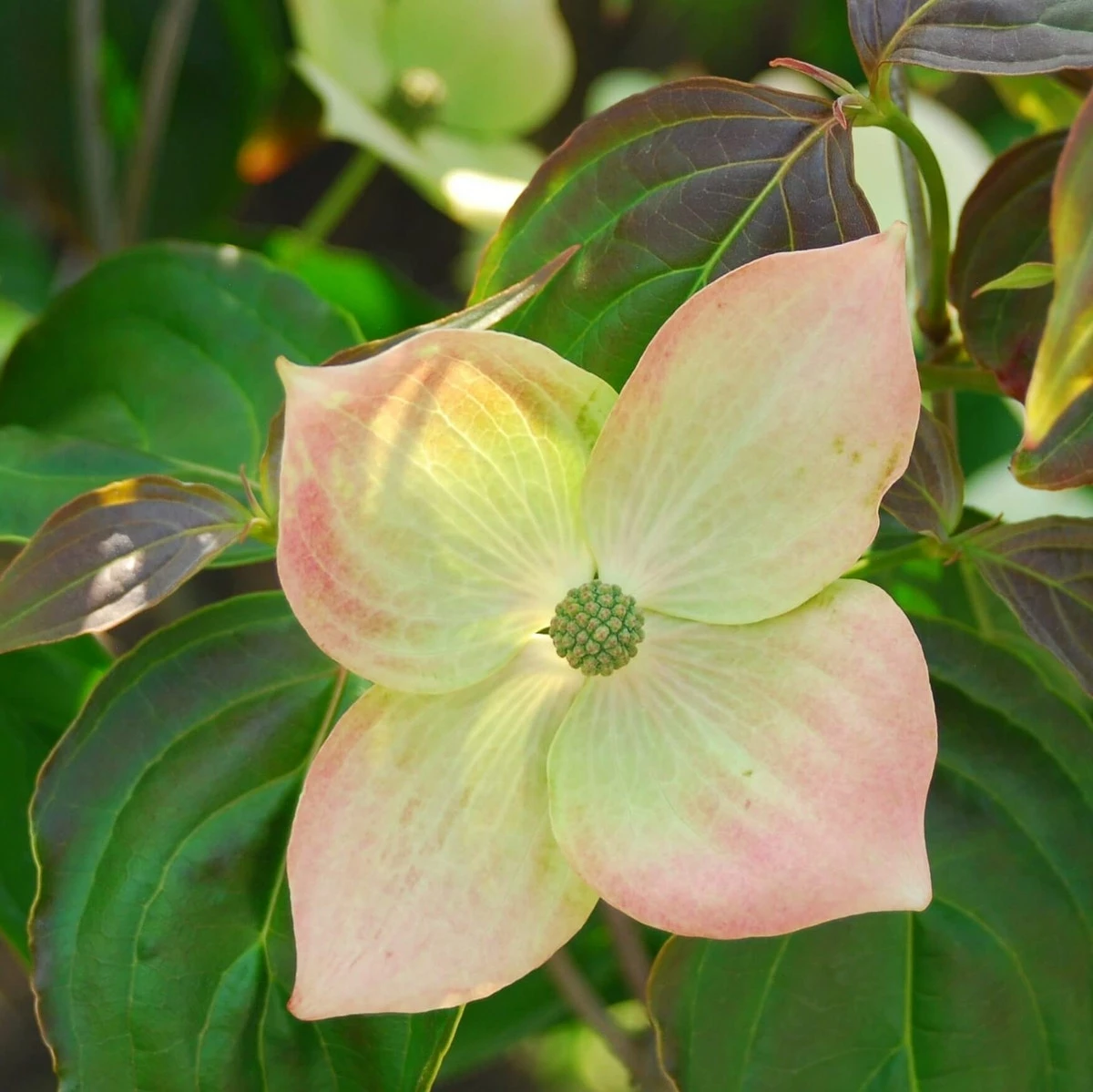 Cornus kousa ‘Teutonia’ is een uitbundig bloeiend soort en krijgt behalve witte bloemen die aan het einde van de bloei iets roze verkleuren ook een mooie herfstkleur.