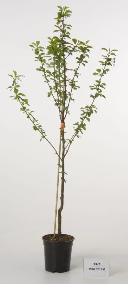 De Prunus domestica (mini-pruim )blijft kleiner dan de gemiddelde andere pruimenbomen
