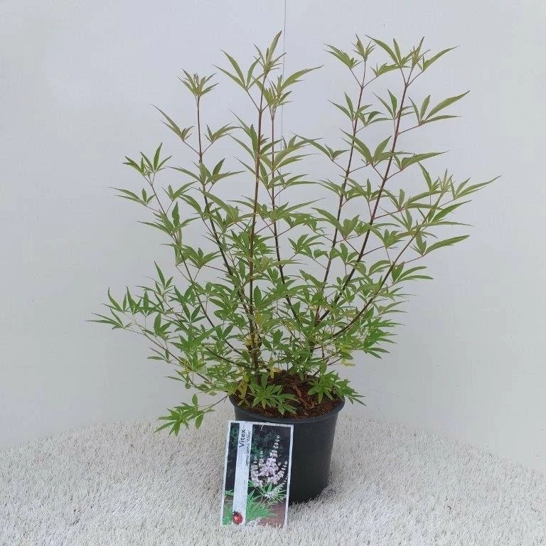 Vitex agnus castus ‘Albus’ ook wel monnikenpeper genoemd krijgt kleine witte bloemetjes die zowel vlinders als bijen aantrekken. Deze plant staat graag op een beschutte plek in uw tuin. In de winter moet de plant beschermd worden tegen de vorst. De monnikenpeper hoeft niet gesnoeid te worden. Als u de struik klein wilt houden, dan kunt de de plant het beste in de winter snoeien.
