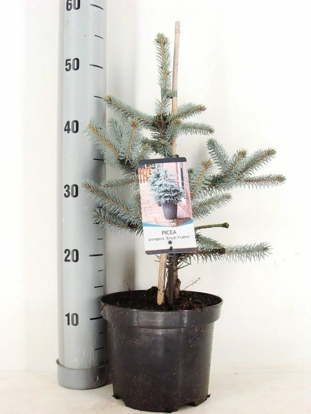 Noorse Blauwspar (Picea pungens ‘Erich Frahm’ komt oorspronkelijk uit de Verenigde Staten en is door de blauwe kleur erg populair. In het voorjaar komen de nieuwe scheuten heel fris tot ontwikkeling. Geef deze exclusieve plant de ruimte, dan komt ze het beste tot haar recht en wordt een fraaie blikvanger in uw tuin. Vooral op droge gronden wordt de plant mooi blauw.