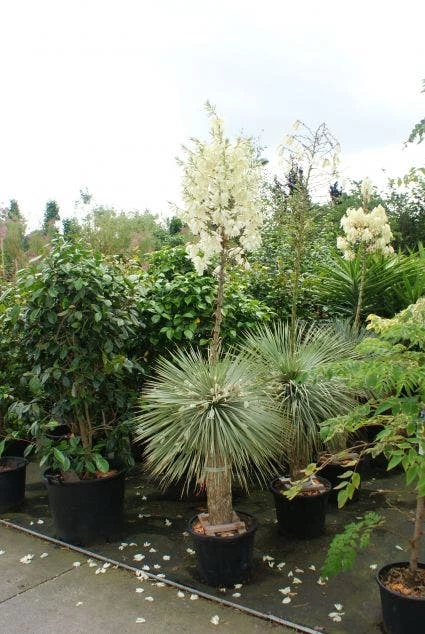 Yucca flaccida ‘Golden Sword’ (Palmlelie) is een mooie yucaa voor in de tuin of een in pot.
