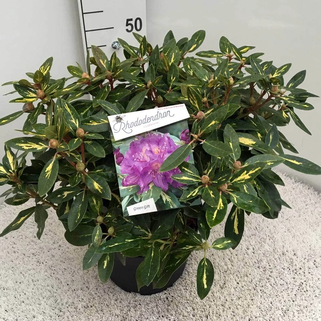 Rhododendron ‘Goldflimmer’ is een grote Rhododendron met geelbonte bladeren. Rhododendron ‘Goldflimmer’ bereikt een hoogte van wel 300cm hoog en 2 meter breed. Rhododendron ‘Goldflimmer’ bloeit met mooie paarse bloemen in mei en juni.