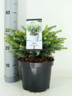 Servische spar (Picea omorika ‘Karel’) is een dwergconifeertje en een cultivar van de Servische spar. De bolvormige plant heeft een blauwgroene kleur, in de winter vergrijzend. Loopt in het voorjaar heel spontaan uit.