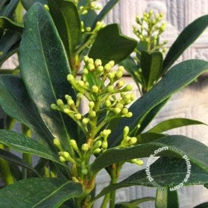 Skimmia japonica ‘Keessen’ is een laagblijvende Skimmia.