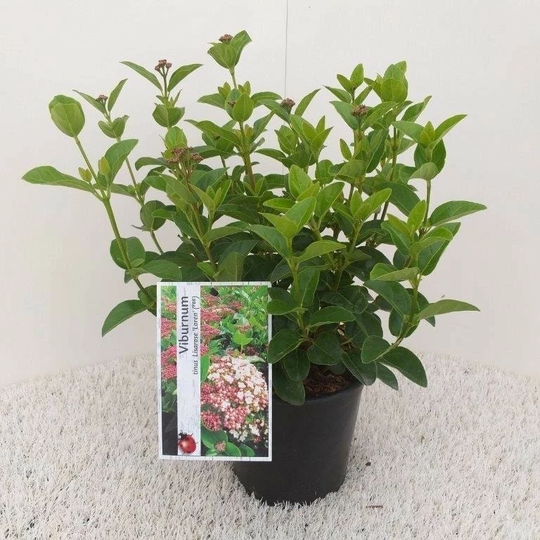 Viburnum tinus ‘Lisa Rose’ kent een compacte groeiwijze en een langzame groeisnelheid en blijft lager. Hierdoor is deze kweekvariant uitermate geschikt voor vormsnoei.