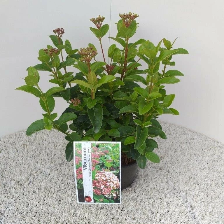 Viburnum tinus wordt ook wel lauriersneeuwbal genoemd. De kweekvariant Lisa Rose of Lisarose is ook bekend als Viburnum tinus ‘Loren’.