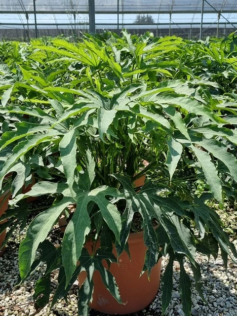 De vingerplant (Fatsia polycarpa ‘Green fingers’) is een zeldzamere en elegantere variant van de bekende Fatsia japonica. De plant is met zijn handvormige blad met 7 grillig gevormde vingers perfect om het jungle-gevoel aan uw tuin toe te voegen. De Vingerplant (Fatsia polycarpa ‘Green fingers’) vraagt een voedzame en vochtige grond op een beschutte plek in de halfschaduw of schaduw en dient tegen strenge vorst beschermd te worden.