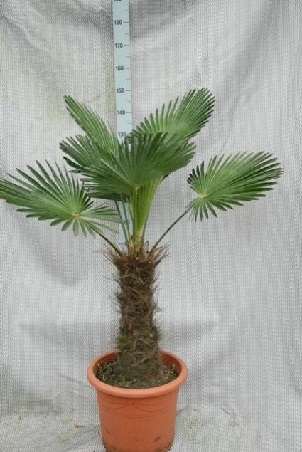 Trachycarpus wagnerianus is een vrij snelle groeier onder de winterharde palmen, de stam groeit circa 20 cm per jaar.